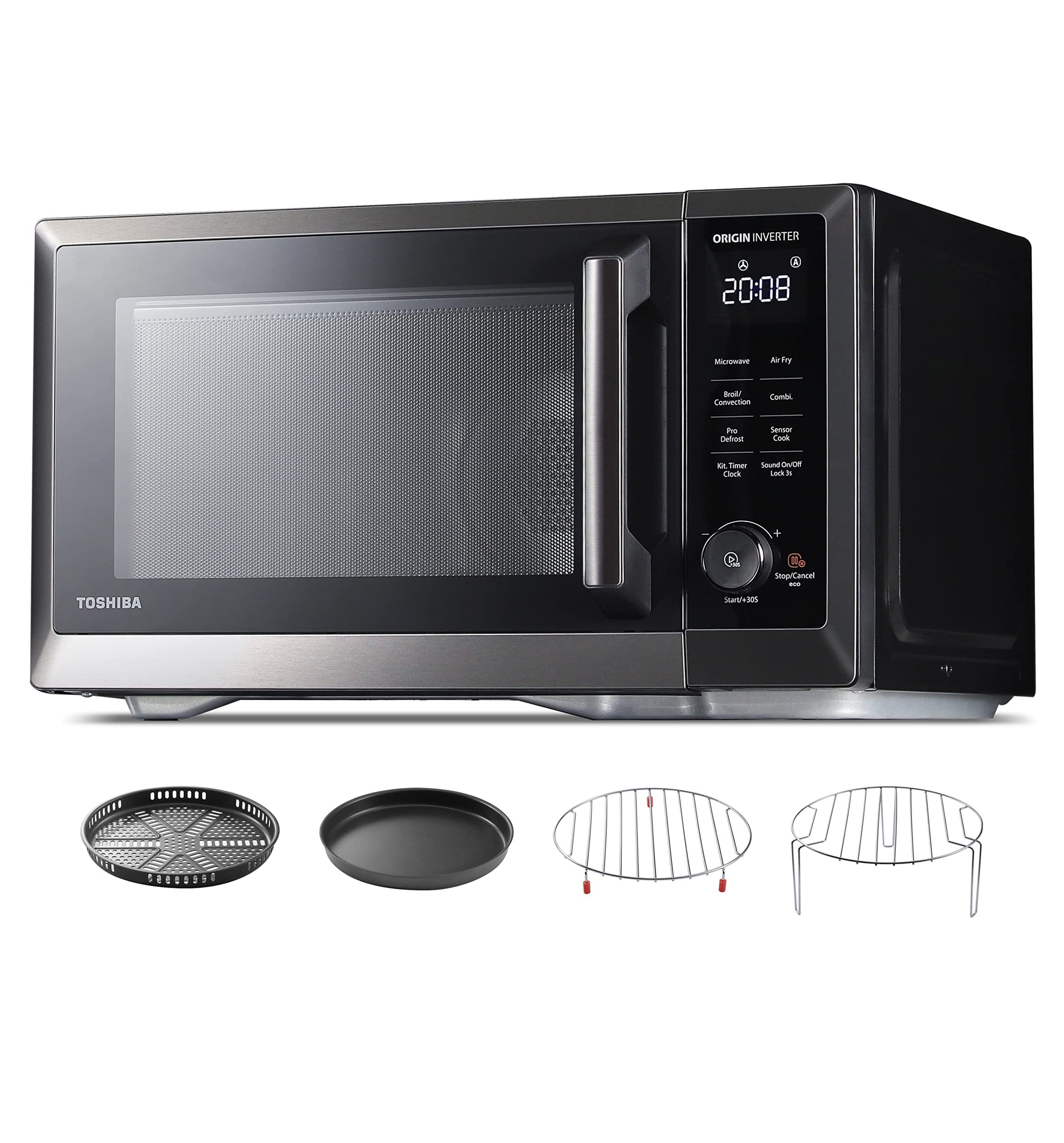 - 【7-In-1 Ultimate Versatility】TOSHIBA MASTER 7 in 1 Premium Microwave with 10 power levels can be your ultimate kitchen helper. The versatility as a microwave, air fryer, convection oven, broiler, defroster, combi cook and humidity sensor function make it your best countertop space-saver