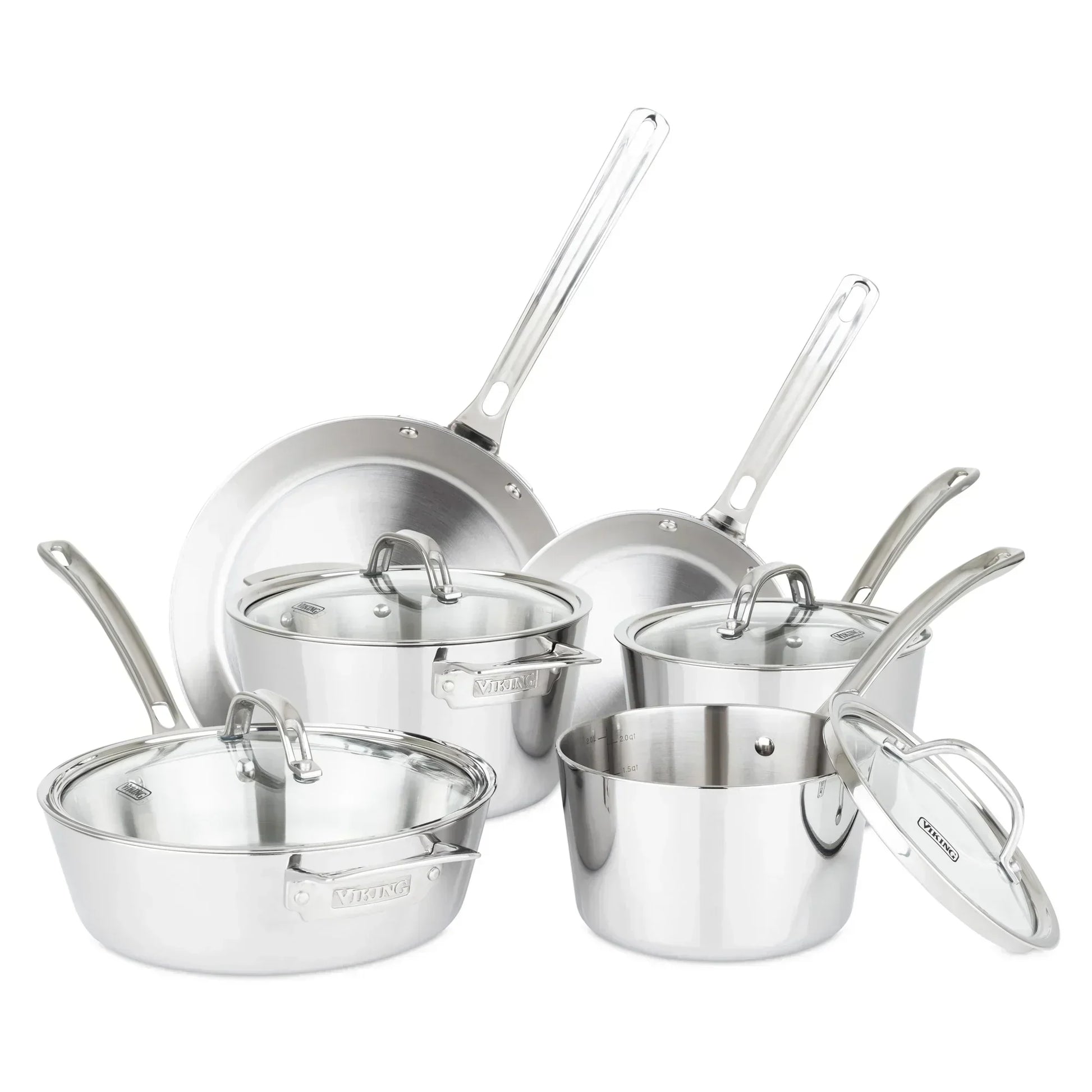 Viking Contemporary 3-Ply Stainless Steel 10-Piece Cookware Set with Glass Lids